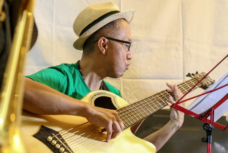 東京、神奈川で活躍中のオリジナルジャズ・ファンクバンド。様々なジャズフェスティバルでの高い評価を受けるScarab。逗子では、Zushi Music Festa 2015(冬編)に登場以来、1年10ヶ月ぶりの登場。今回はいつものライブとひと味違う、小編成でのカホンを使ったアコースティックな編成にてのライブを演奏をいただきました。5.6曲目に、市浦もアコースティックベースにて、はじめて演奏をご一緒させて頂きました。楽しい演奏と良い思い出になりました!!