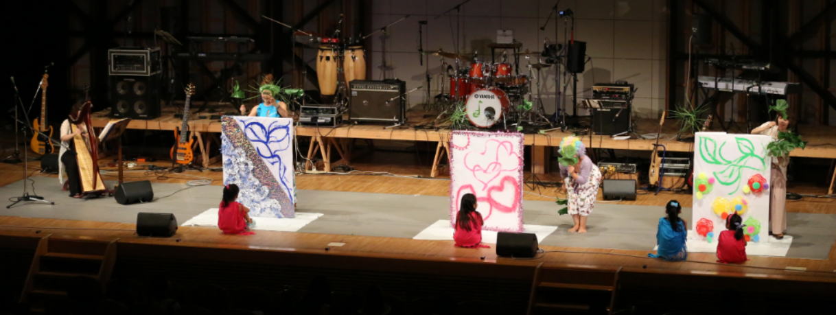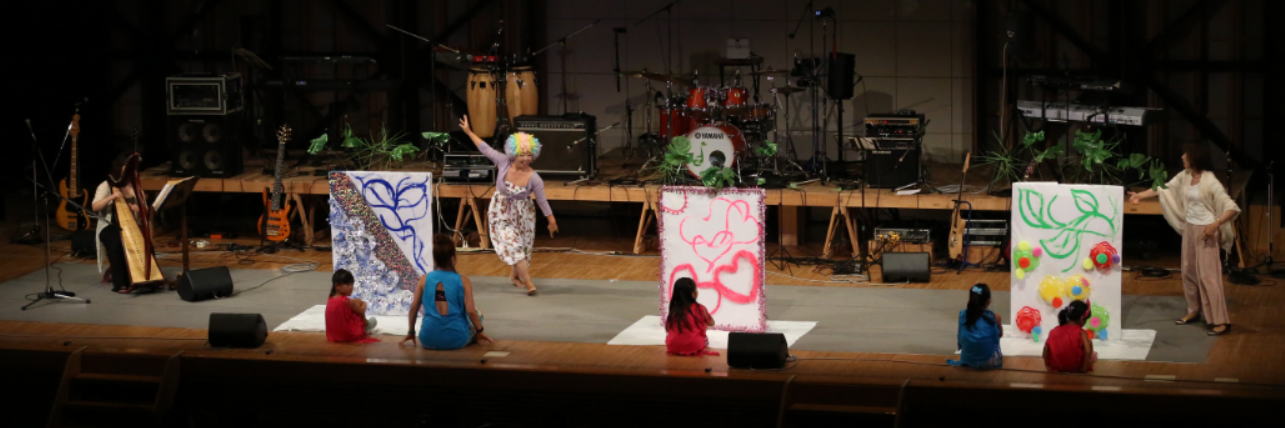 逗子ハープサロンのハープ奏者である麻由、Yuki Dance Schoolの遊亀子、書道家、アンジェラの即興パフォーマンスを披露いただきました。Yuki Dance Schoolのメンバー有志参加をいただきました。
