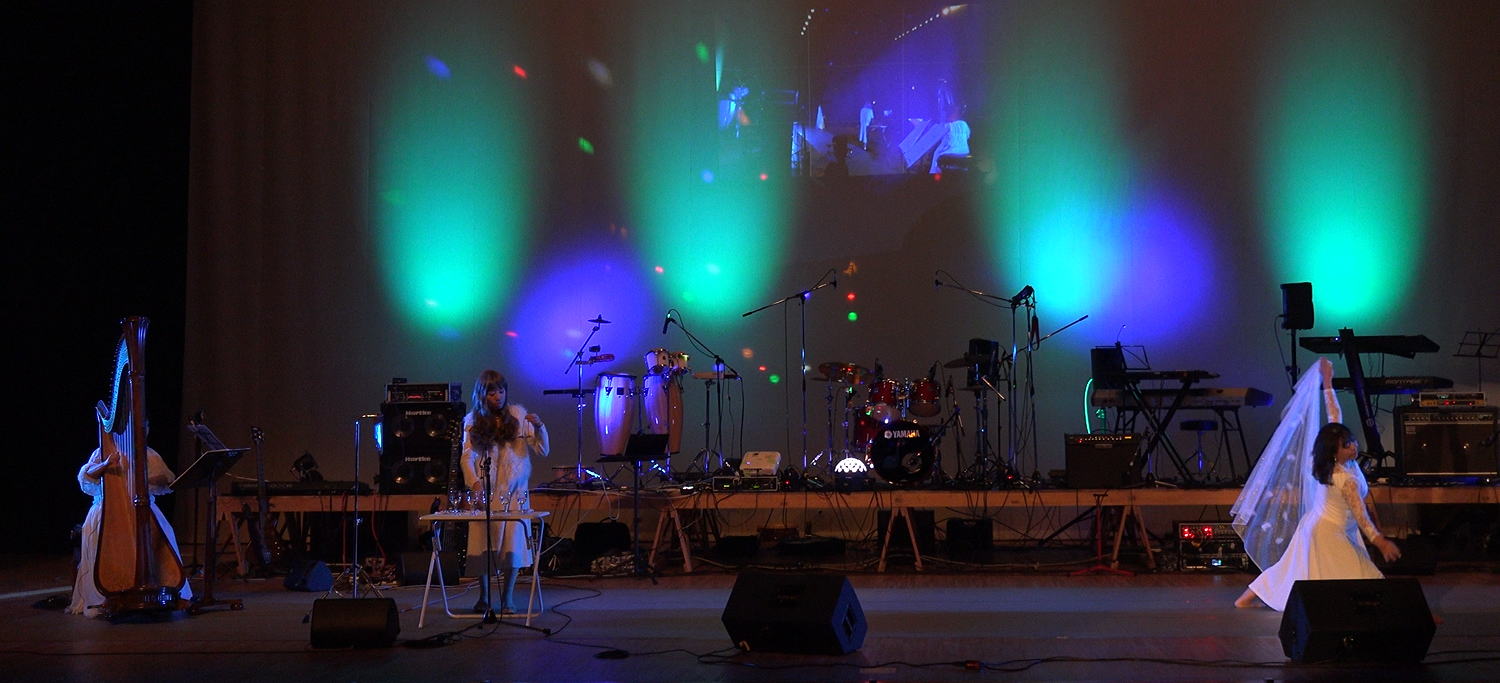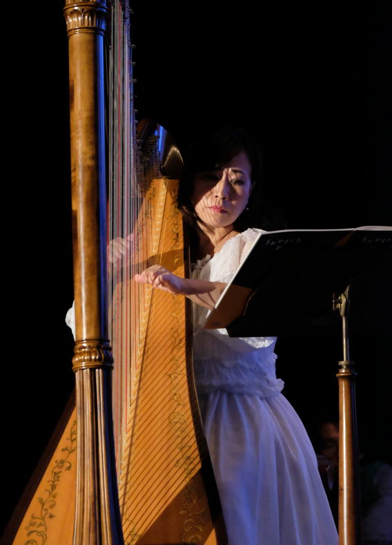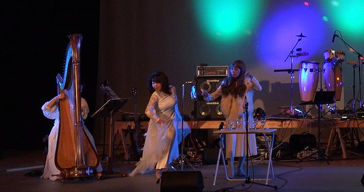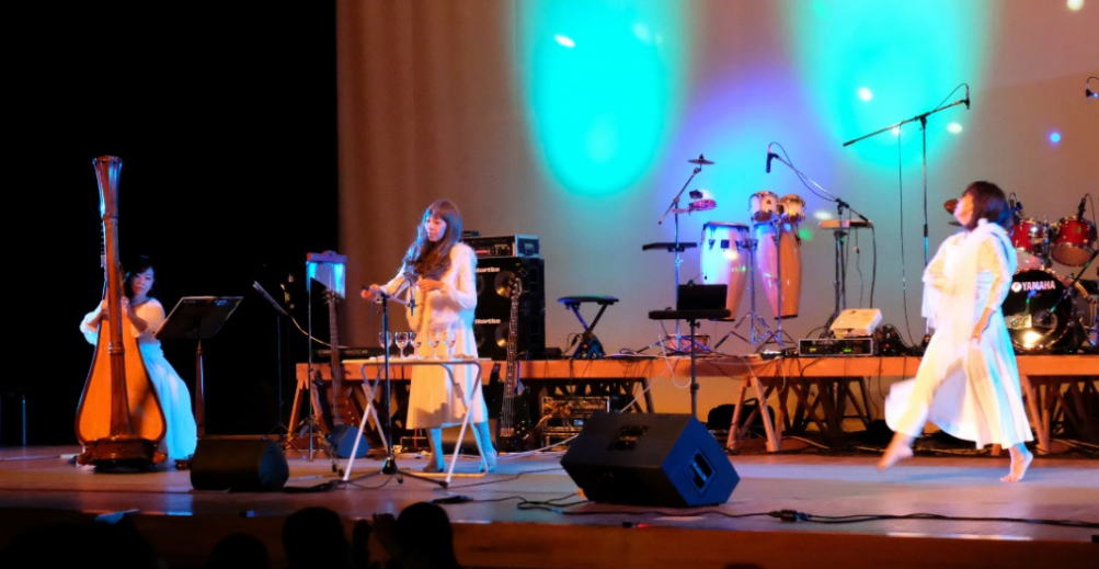 メンバー:(ハープ演奏者)麻由、(ダンス)遊亀子、(書)アンジェラ &Yuki Dance Schoolメンバー
